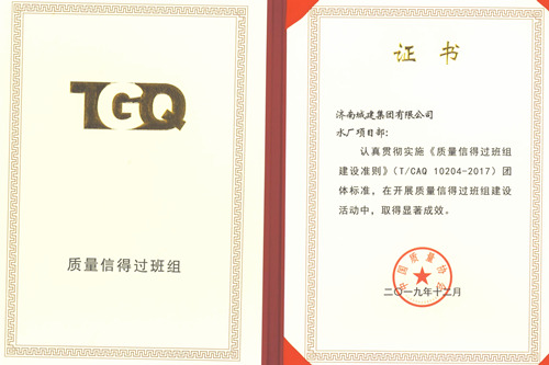 集團水廠項目部榮獲中國質(zhì)量協(xié)會“質(zhì)量信得過班組”