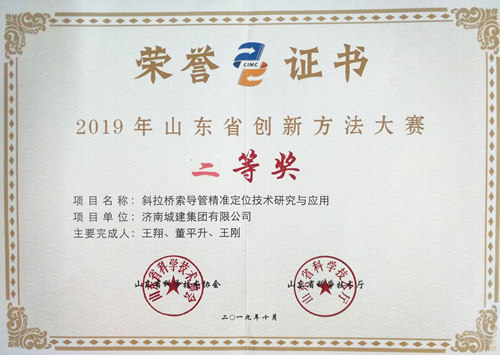 集團(tuán)《斜拉橋索導(dǎo)管精準(zhǔn)定位技術(shù)研究與應(yīng)用》榮獲“2019年度山東省創(chuàng)新方法大賽二等獎”
