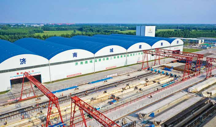 近年來,以裝配式為核心的建筑產業(yè)化快速發(fā)展,成為加快施工效率、提升企業(yè)全產業(yè)鏈整合能力、增強市場競爭力的重要推動力。集團以大西環(huán)項目為試點,遵循“因地制宜、節(jié)約土地、保護環(huán)境、安全可靠”的原則,投資 8000 萬元建設濟南繞城高速公路二環(huán)線西環(huán)段項目預制場站。預制場站占地面積約 180 畝,以信息管理、集約化管理為依托,高標準合理規(guī)劃場站布局,劃分出制梁區(qū)、鋼筋加工區(qū)、存梁區(qū)、保障區(qū)、提梁上橋區(qū)(裝車區(qū)〉和辦公生活區(qū)等區(qū)段,各區(qū)段布局合理,功能完備。其中,預制臺座總體布局為南北方向,共分為 3個預制區(qū),每個預制區(qū)左側為兩槽縱向排列預