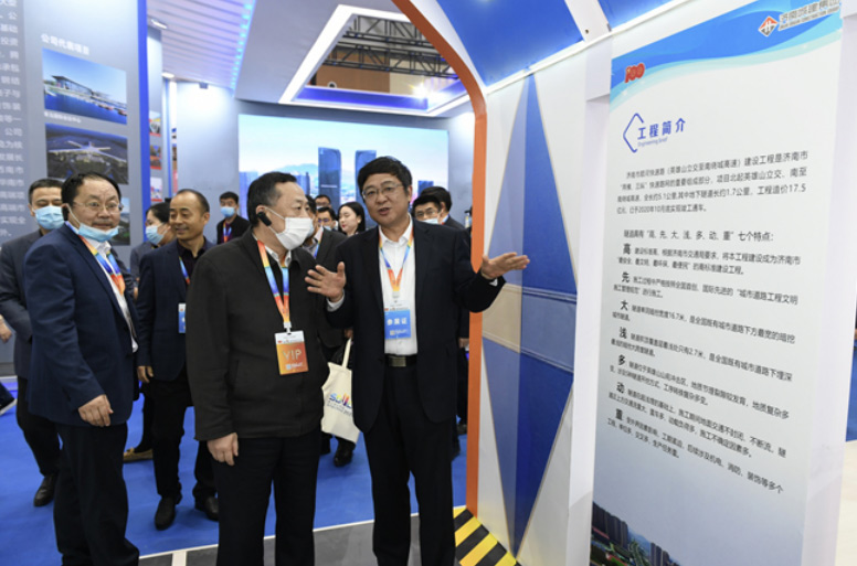 上午,國家住建部城建司一級巡視員趙澤生、省政府副秘書長張積軍、省住建廳廳長王玉志、濟(jì)南市副市長孫斌等領(lǐng)導(dǎo)到城博會現(xiàn)場察看,并專程來到集團(tuán)展區(qū)參觀指導(dǎo)。牟曉巖董事長介紹了集團(tuán)概況、發(fā)展歷程、市場經(jīng)營、多元化發(fā)展,以及集團(tuán)“十四五”發(fā)展戰(zhàn)略等情況,結(jié)合濟(jì)南望岳路隧道、G104黃河大橋模型,重點(diǎn)介紹了集團(tuán)先進(jìn)施工工藝和科技創(chuàng)新成果應(yīng)用情況。國家部委、省市領(lǐng)導(dǎo)對集團(tuán)精細(xì)化管理、跨越式發(fā)展、多元化戰(zhàn)略等方面取得的成績給予高度贊揚(yáng),勉勵集團(tuán)發(fā)揮市政行業(yè)龍頭企業(yè)優(yōu)勢,履行國企責(zé)任擔(dān)當(dāng),引領(lǐng)帶動城市建設(shè)高質(zhì)量發(fā)展。