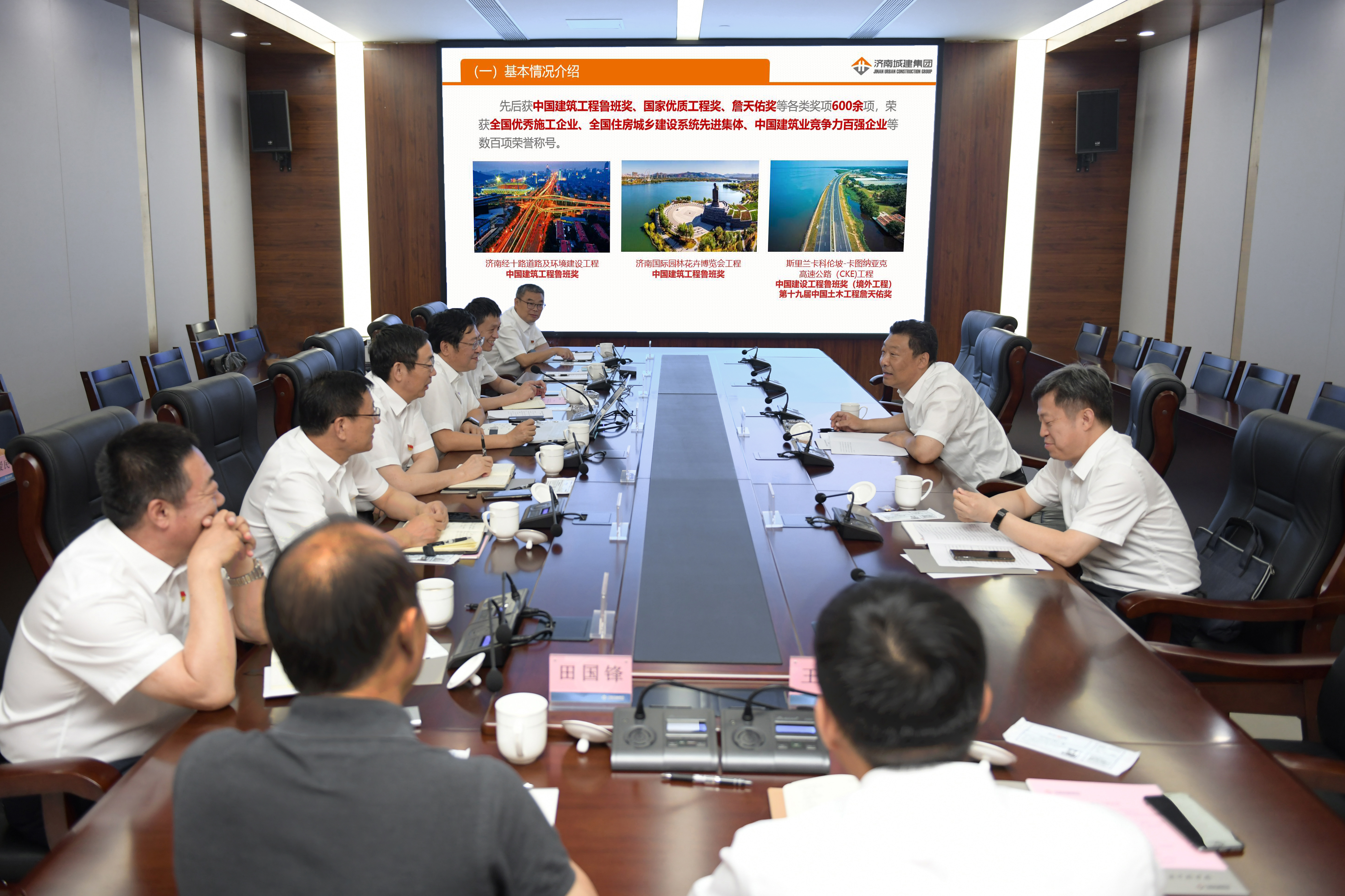7月1日下午,建設(shè)集團(tuán)黨委副書記鐘善良一行到集團(tuán)調(diào)研指導(dǎo)工作。集團(tuán)黨委書記、董事長(zhǎng)、總經(jīng)理牟曉巖等領(lǐng)導(dǎo)班子成員參加活動(dòng)。
